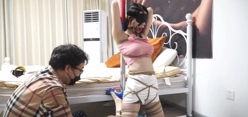 在经过两次捆绑之后,柳洋都是成功的逃脱。这次柳洋的搭档学聪明了,将柳洋捆绑好并戴上一个马具刑口塞,戴上眼罩,限制柳洋的视觉。还一边用鞭子抽打柳洋的臀部,脱掉柳洋的高跟鞋挠着她的脚心。这次也终于是让柳洋没有在规定的时间内解开绳索。柳洋的搭档将眼罩以及塞口球摘掉,耐心的听着柳洋的意见,柳洋也是讲将所有能想到的一一讲给自己的搭档听。听完之后搭档一个劲的夸奖着柳洋。然后立刻将柳洋的意见汇报上去。而还被紧紧捆绑的柳洋这时生气的说:“那你快把我解开啊。”搭档:“不会吧队长,你都这么厉害了,还需要我帮忙啊,好了我得赶紧回去汇报工作,队长你自己解开吧。”然后不顾柳洋的呼喊离开了房间~