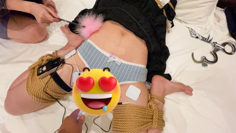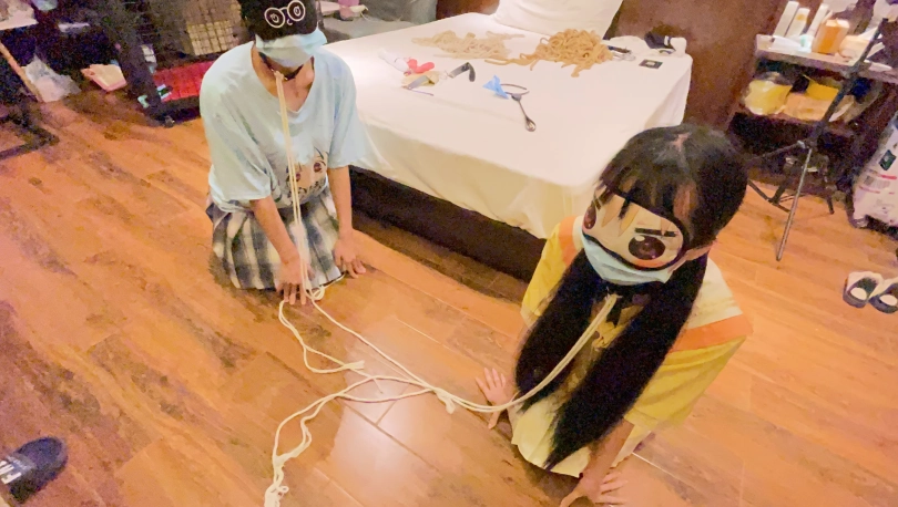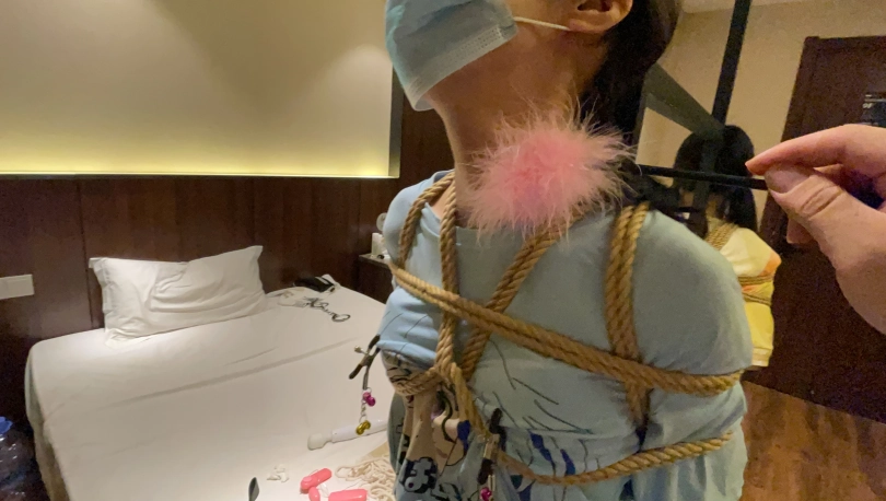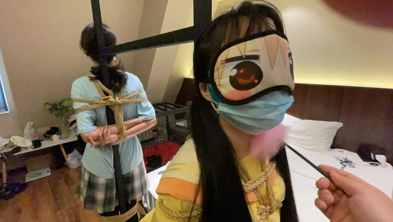 两个人不能同时调教于是将异梦捆绑放置在旁边口水收集