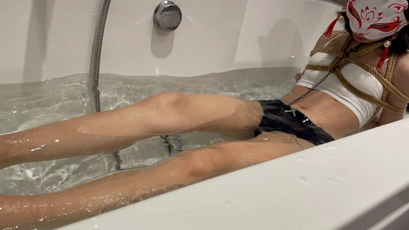 最后让她跪立行走,进入浴室,享受淋浴,以及水中泡泡机的快乐