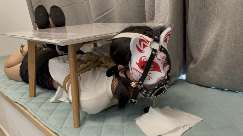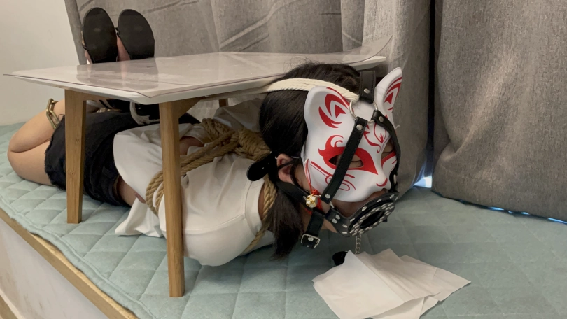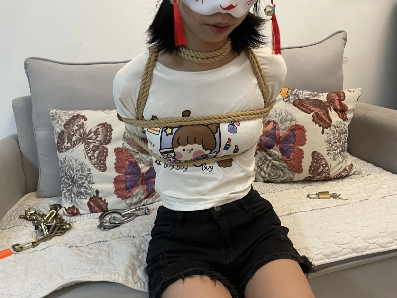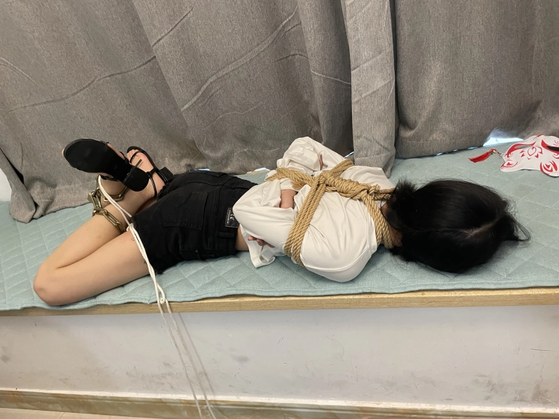 后来将罗菱菱来了一个蕾脖式五花大绑,牵着她上楼梯,脚上靠着脚链,上楼了之后和她安排了一个任务