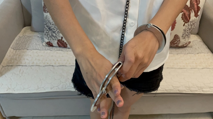1. 自己戴上手铐,项圈,皮手环(戴上后一直戴着不摘掉)