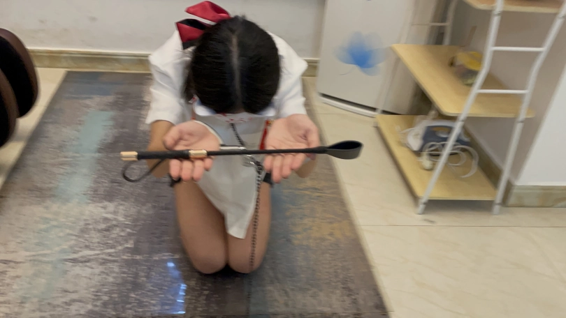 10.在身前三米放置地上防止一个盆装食物,侍女站在三米外,听到主人命令说吃,以最快速度趴过来吃掉。(反复3次,慢了主人随时鞭打)