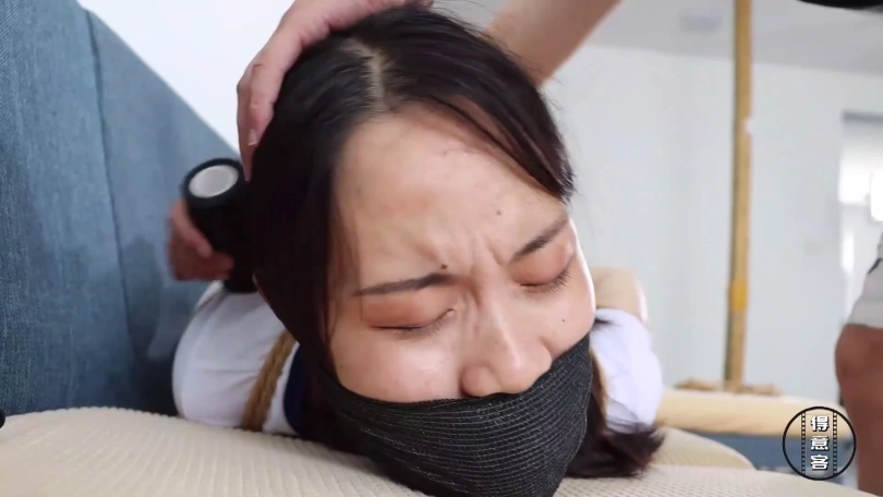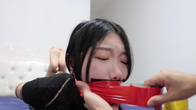 片段6:美女琪梦和表弟被入室劫匪捆堵折磨,还被胶布绷带一圈圈缠绕封嘴。