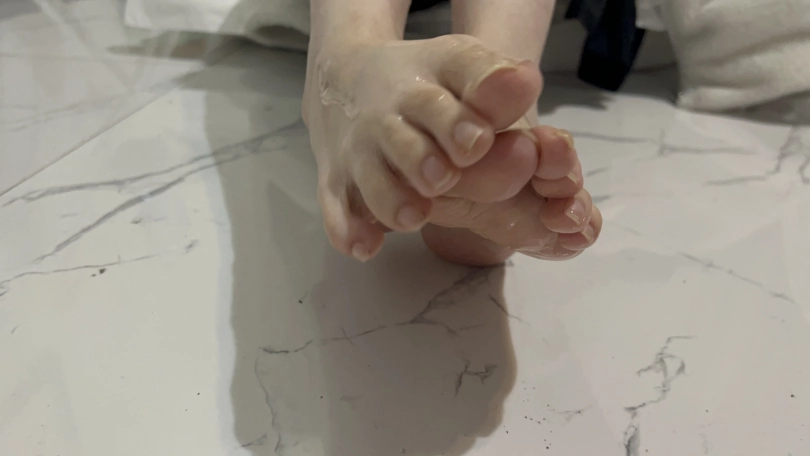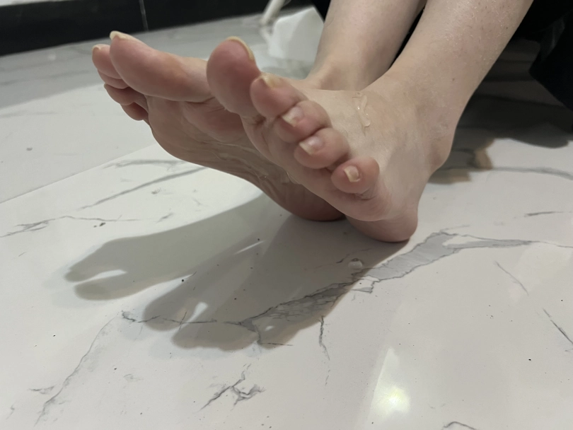 刚开始将可心的脚心涂上润滑油,让可心自己用脚脚玩不用手,玩三到五分钟让可心去浴室在自己将沐浴露涂抹在脚上自己玩并洗干净