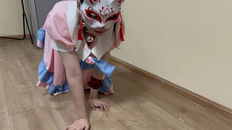 10女奴饿的不行蜷缩在角落,在远处扔下来狗粮在小盆,毫无尊严的迅速爬去吃掉。(不能用手)