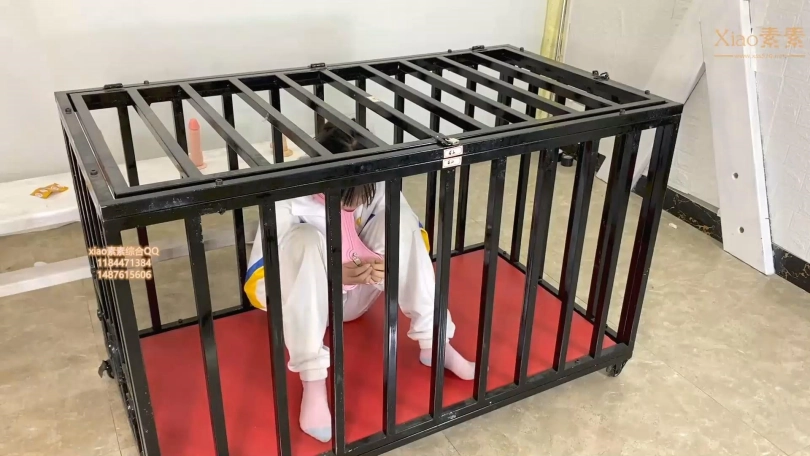 校服学妹朵朵被关进铁笼手颈枷拘束