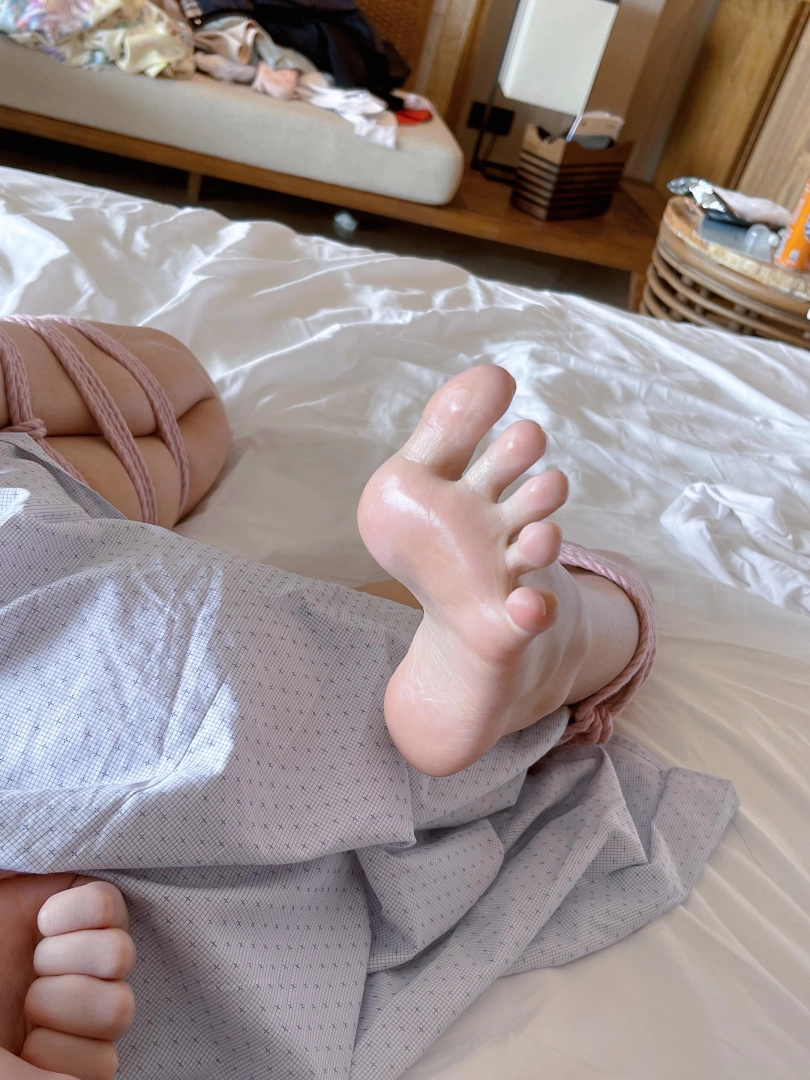 挠了一会,男人还不过瘾,甚至隔着绳子脱下了茶茶的白丝,茶茶一双白嫩完美的裸足就这样显露出来,嫩的仿佛能戳出水来。涂上精油之后,茶茶的脚底就像天下最精致诱人的食物一般,白皙嫩滑的同时还闪烁着诱人的光泽。白皙的脚丫脚底竟然是诱人的粉红色,仿佛向世界宣示着这双完美玉足的主人的脚心是多么的敏感....