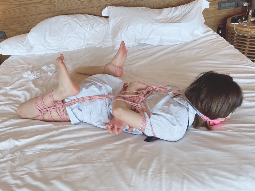 “唔~咕..唔唔!”少女迷迷糊糊的恢复了意识,却发现眼前一片漆黑,什么都看不见。想要坐起身来,身体却完全不听大脑的指令,手脚都被紧紧的收拢在背后,乖乖的以驷马躜蹄的姿势被紧缚在床上。茶茶想要大声呼救,却发现口腔早已被自己穿过的丝袜填满,谨慎的男人还用医用辅料粘住了茶茶的小嘴,医用辅料的粘贴力度严丝合缝,仿佛与茶茶的皮肤融为一体....