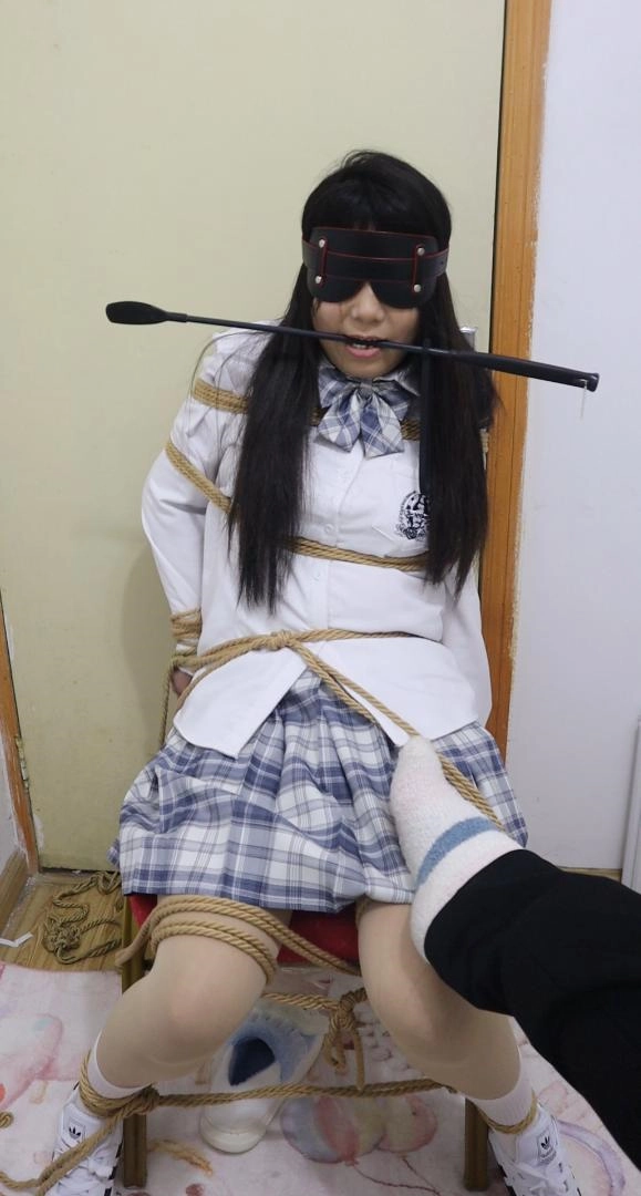 接下来让美少女A姐姐用她的樱桃小嘴咬住马皮鞭子,委屈的女孩子只能无奈的咬住,