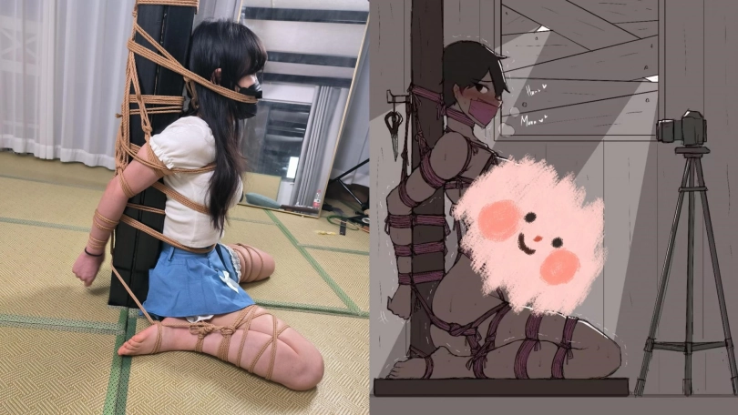 【象人】柱缚!小0-复刻漫画,柱缚,折腿,被紧紧绑在柱子上,一动不动!(全过程)