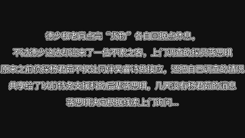 德少和老肖点完“货物”各自回据点休息,
