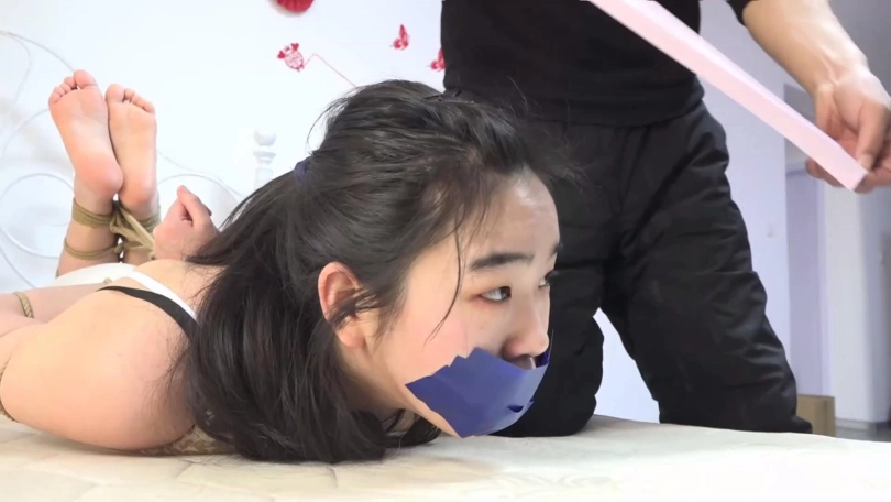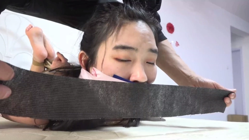 看点:塞嘴封嘴过程细致展现,逃脱未遂二次捆堵,五花驷马挣扎,裸足脚面近距离特写。