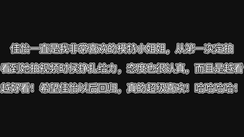 佳怡一直是我非常喜欢的模特小姐姐,看到她拍视频时候挣扎给力,态度也很认真,而且是越看越好看!真的超级喜欢!