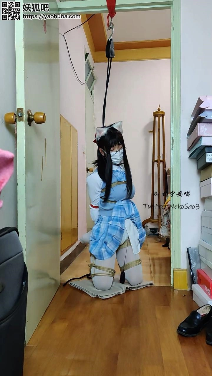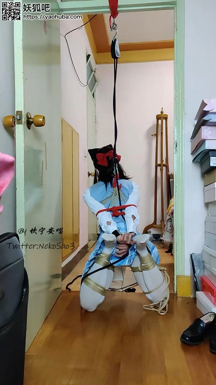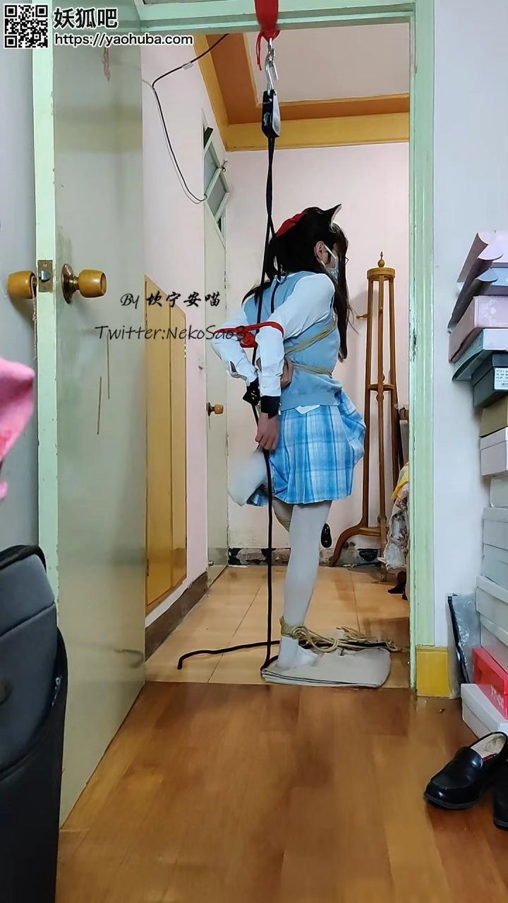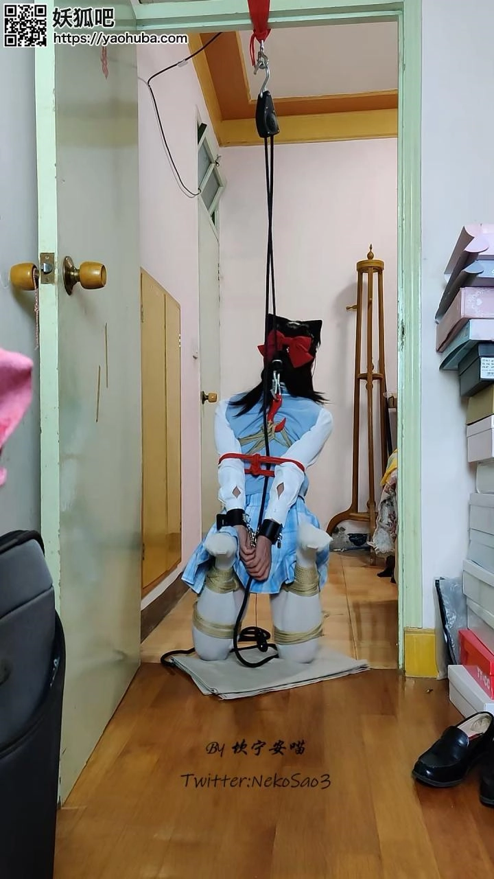 脖子的项链也连接到了吊绳上,让上半身只能被迫保持直立的状态,如果保持不住平衡向外倒的话就会勒住脖子,跪得不够直也会勒~~