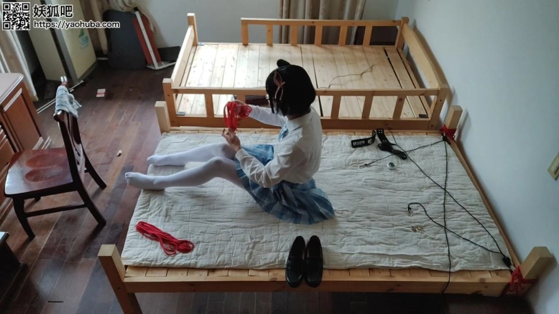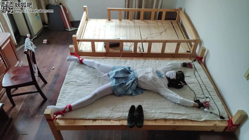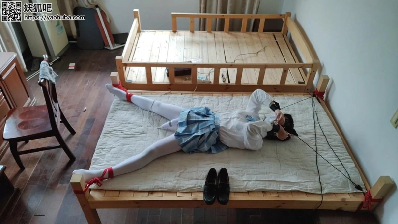 › 【坎喵】女装子白丝JK床上固定定时自缚