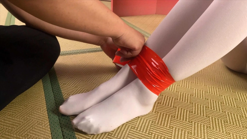 › 【象人】猫猫-胶带束缚,长身挣扎,红胶带+白丝。