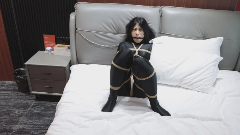若楠小姐姐被带上项圈,移动范围被控制到了床头。