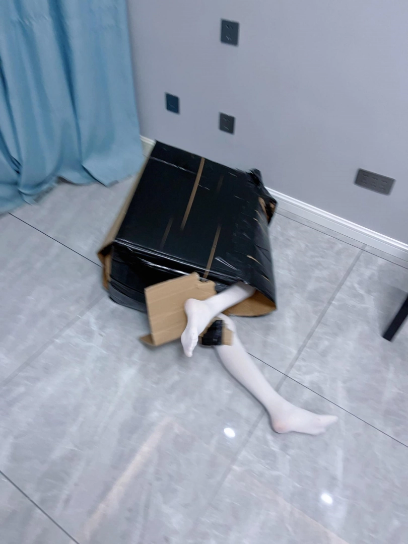 装箱脱出挑战第二部来啦!这次让茶茶穿上白丝死库水,难度升级哦———这次会把茶茶的双手握拳用银色胶带包裹好,然后把茶茶双手背缚,两个小臂死死反绑在一起,绝对没有用手辅助脱缚的可能!