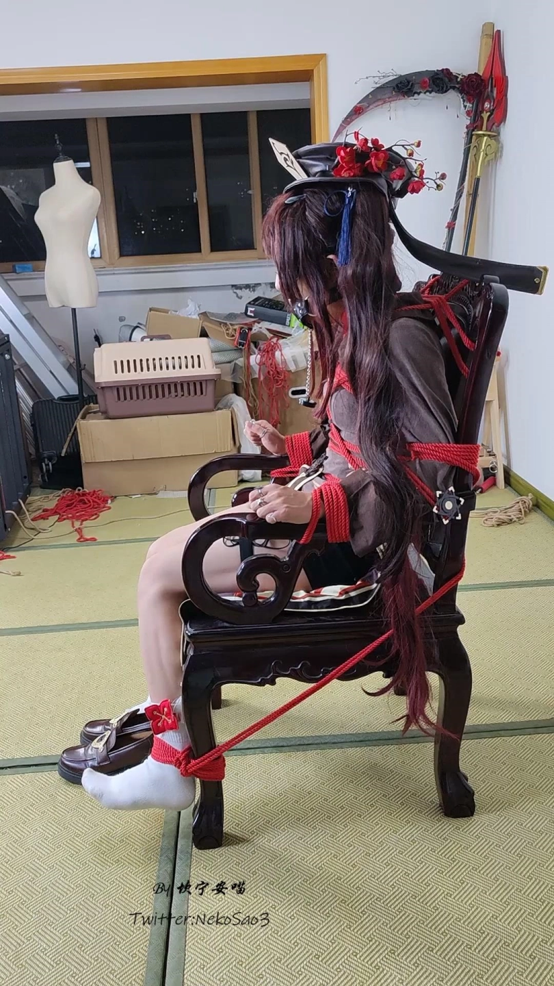 [往生堂的堂主胡桃被结结实实捆在了椅子上,眼睛蒙上了眼罩,嘴巴也戴上了强制开口的开口枷,[X_X]被奇怪的震动玩具填满,大腿内侧和脚底还被贴上了冰凉的电击贴片……接下来会发生什么呢?]