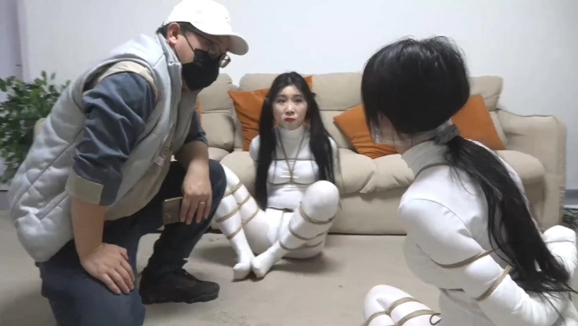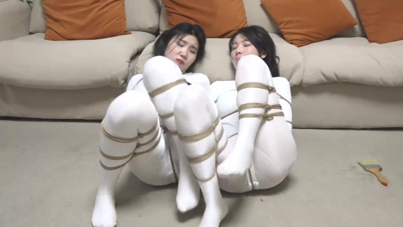 统一的制服,白丝油光丝袜和性感体操服,2位美女超级诱人,2个被直播贩卖的白丝女奴,虽然被绑成肉团但男人也给她们逃跑的一线生机,就在2个美女奋力求救的时候,一个陌生人闯入,结果陌生人没有打算救她们,反而玩弄起来。