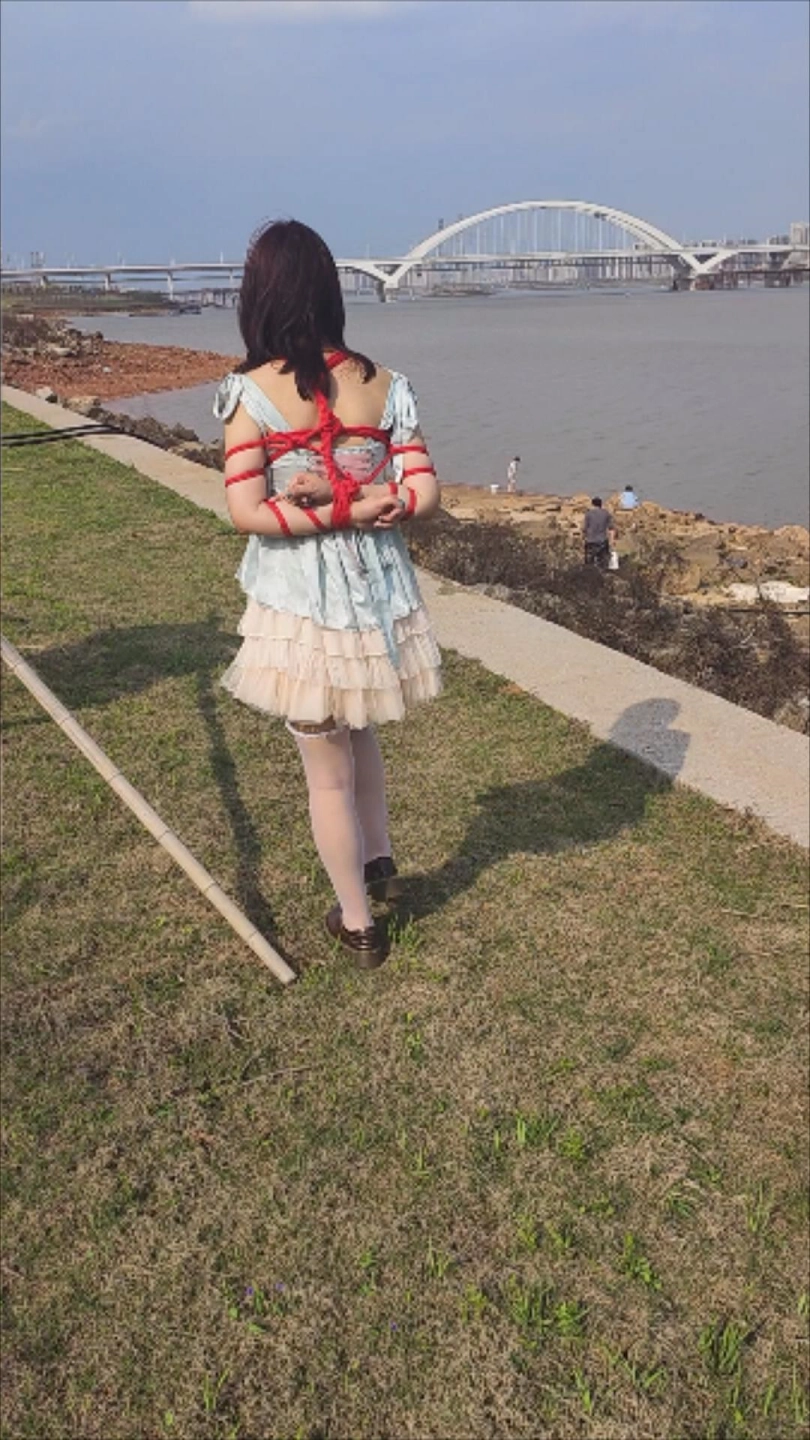 女生第一次户外捆绑有点紧张,之前微信聊天还霸气的说不怕人多,结果一下车就秒怂,大堤上车来人往的很多,但下面的江边其实人并不多,只遇到几个给草地洒水的大爷,江边钓鱼的大叔,拍到后面女生的心情才放松下来,当天天气实在是有点热,女生的右手也有一点点扭伤,所以提前结束了拍摄,立马请女生去吃了肯德基。