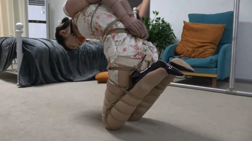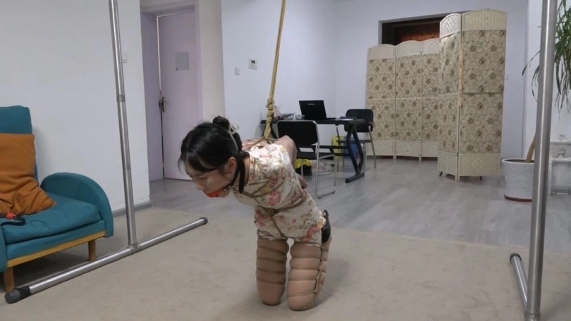 › 【逍遥】韩玉(琪梦)旗袍直臂跪缚后手吊 痛苦的膝盖顶地放置