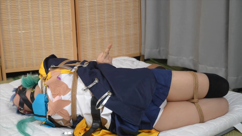 巴巴洛斯(小0)醒来发现被捆绑住了,只能在床上挣扎,