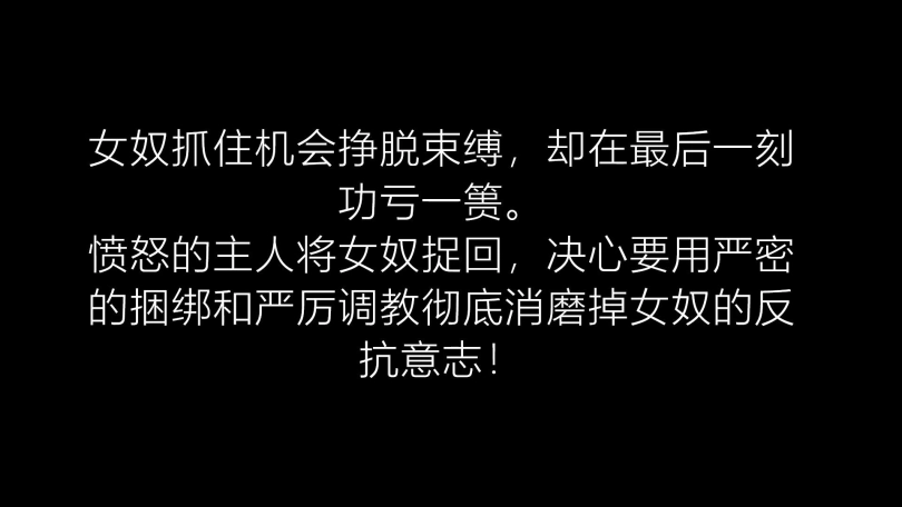 被按倒的女奴一边挣扎一边哀求,主人不为所动,拿出绳索将女奴双臂和双腿折叠缚紧。