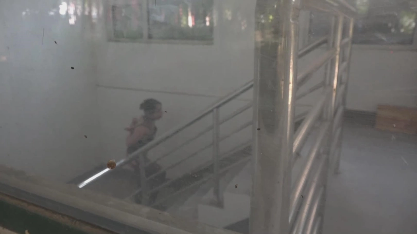 › 【逍遥】《逃脱失败之后》上集,一位被捆绑堵嘴的少女,艰难的走在楼梯间中。