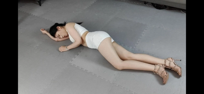 被撞晕失去意识的漂亮小姐姐被扛回家里摆弄,涉及元素有裸足、足恋、摆弄、翻眼皮等。