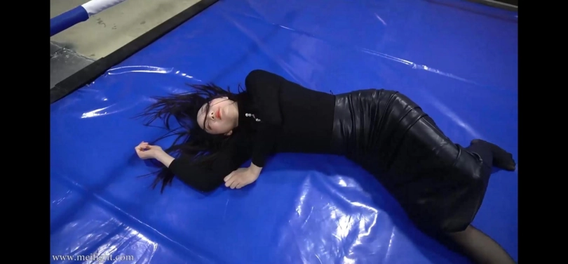 黑皮衣女和反派吵架后打斗,被各种蹂躏,摆出各种羞耻姿势,最终倒地失去意识。