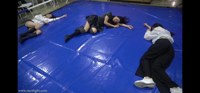 三位制服美女多次打晕、捂晕对方后玩弄,并摆出各种羞耻姿势。最终三个美女全都倒地昏迷不醒。
