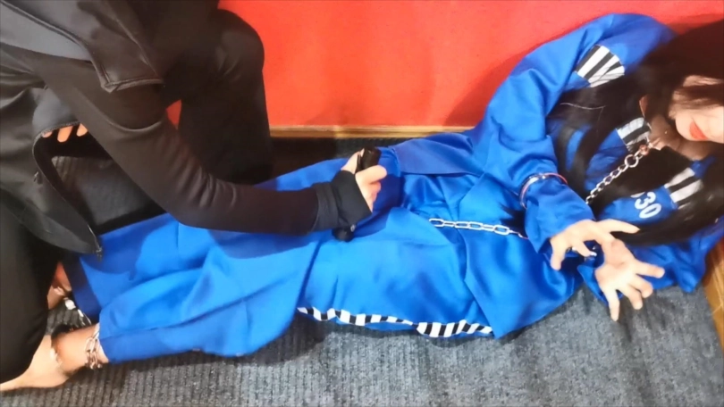 拍照留档后穿上蓝色马甲被关,利用头发上藏好的一字夹开锁,