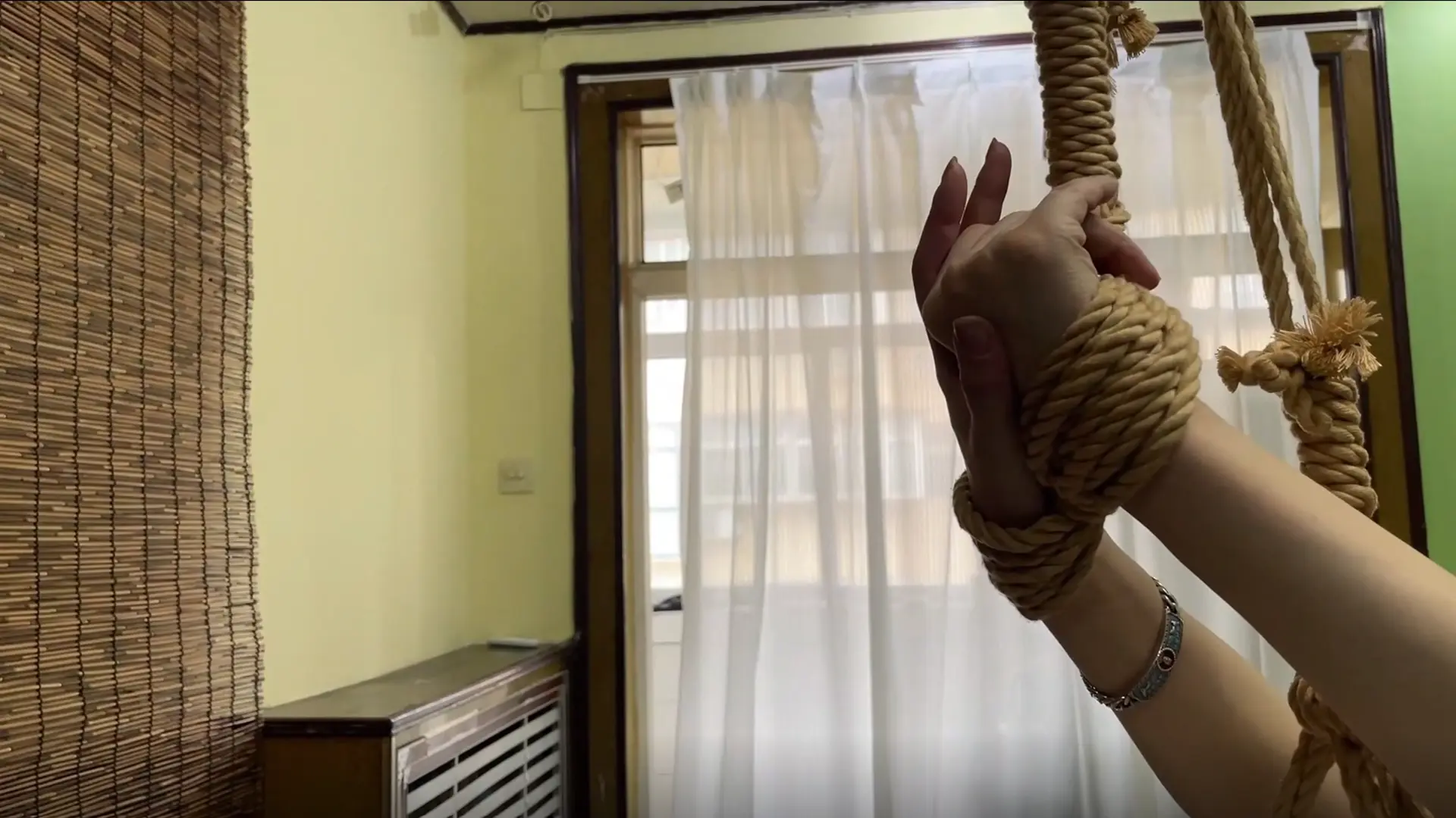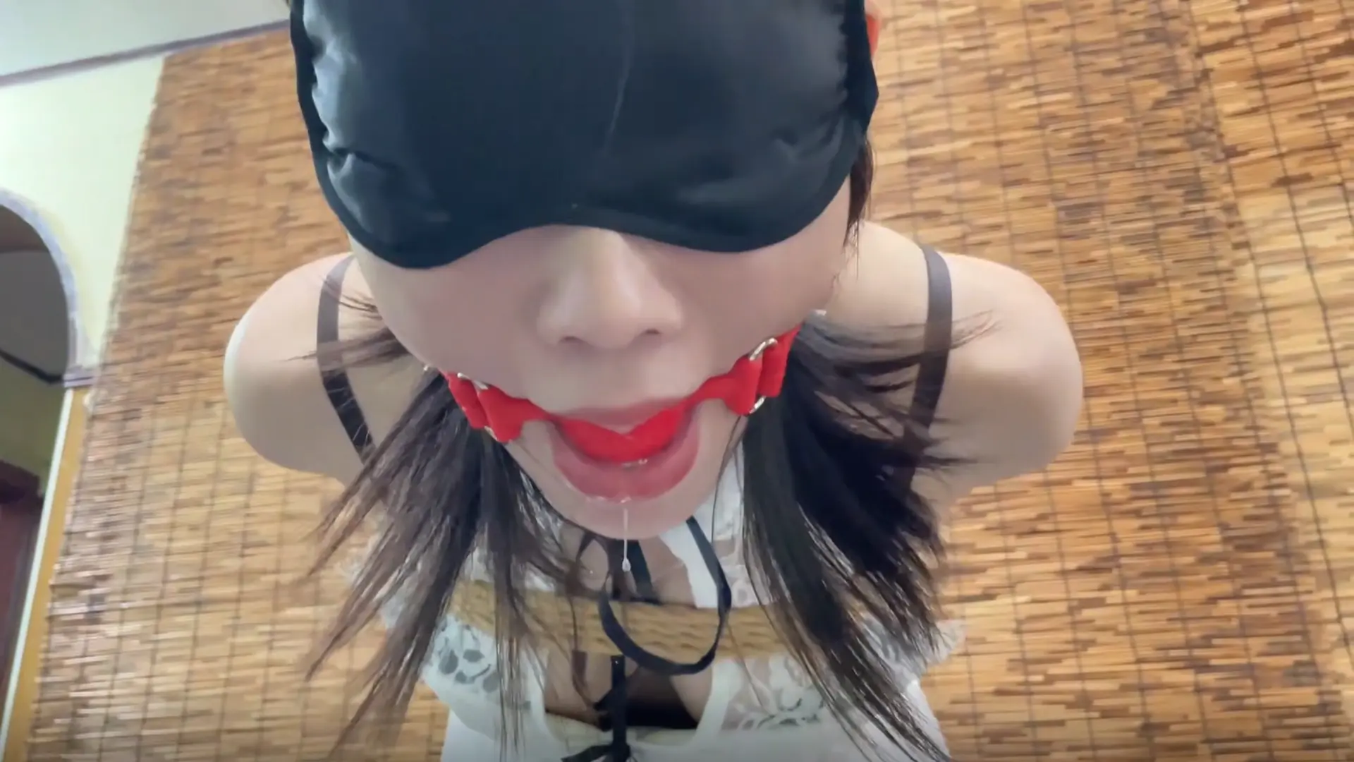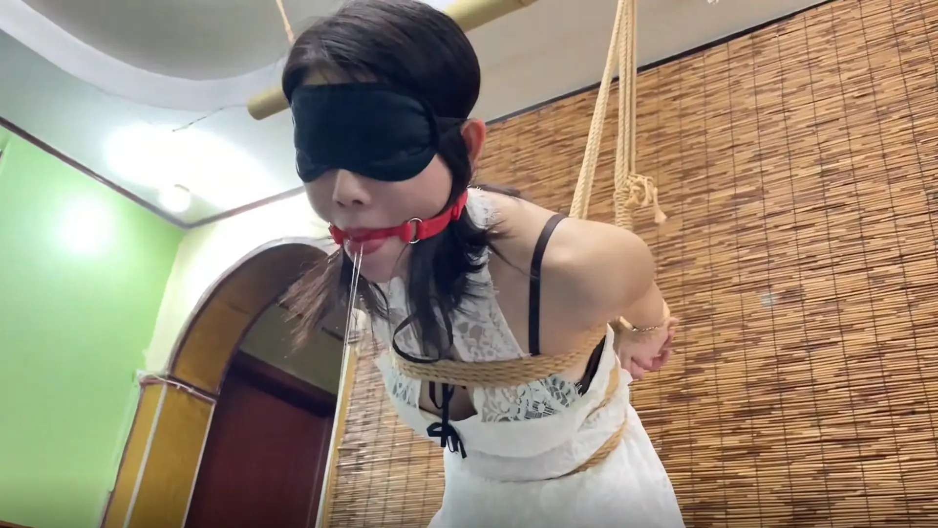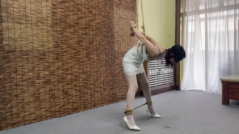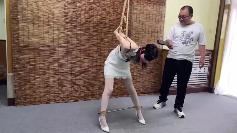由于柳洋被后高手吊缚,嘴里的口水不由自主地流出来。张先生看到柳洋口水如飞瀑一般,继续开口嘲讽道:“这么快就流口水了,看来你骨子里也是一个下贱的女人呐,哈哈哈哈哈哈哈哈哈。”