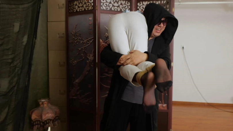 看着被击败的凉兮,女人不停嘲讽,接着十分蔑视的要求面罩男给她解开绳子,埋怨他手脚不利索。但男人似乎没有给她松绑的意思,他告诉女人她的死对头愿意出更高价雇佣他,条件是把女人带给他玩弄。女人十分害怕,她回应男人自己愿意出更多的钱保自己,但男人却毫不领情,对着女人发泄了起来,最终将她迷晕。面罩男看着倒在地上的凉兮面容姣好,心想把她也带回去也许可以拿到更多的钱,于是男人捡起地上的绳子。。。