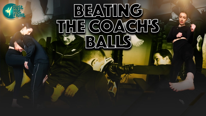 Bella practices punches with her trainer and at one point gets hit in the face. He is outraged but they continue practicing, then she punches him in the face on purpose and then starts beating his balls.