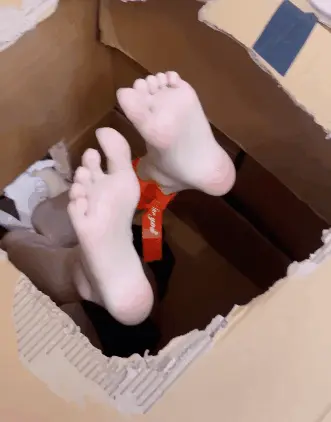 第四幕:从上到下俯拍纸箱,妹子的裸足足底正对着镜头。自上而下不断有粘液滴落在女仆白皙的裸足上。