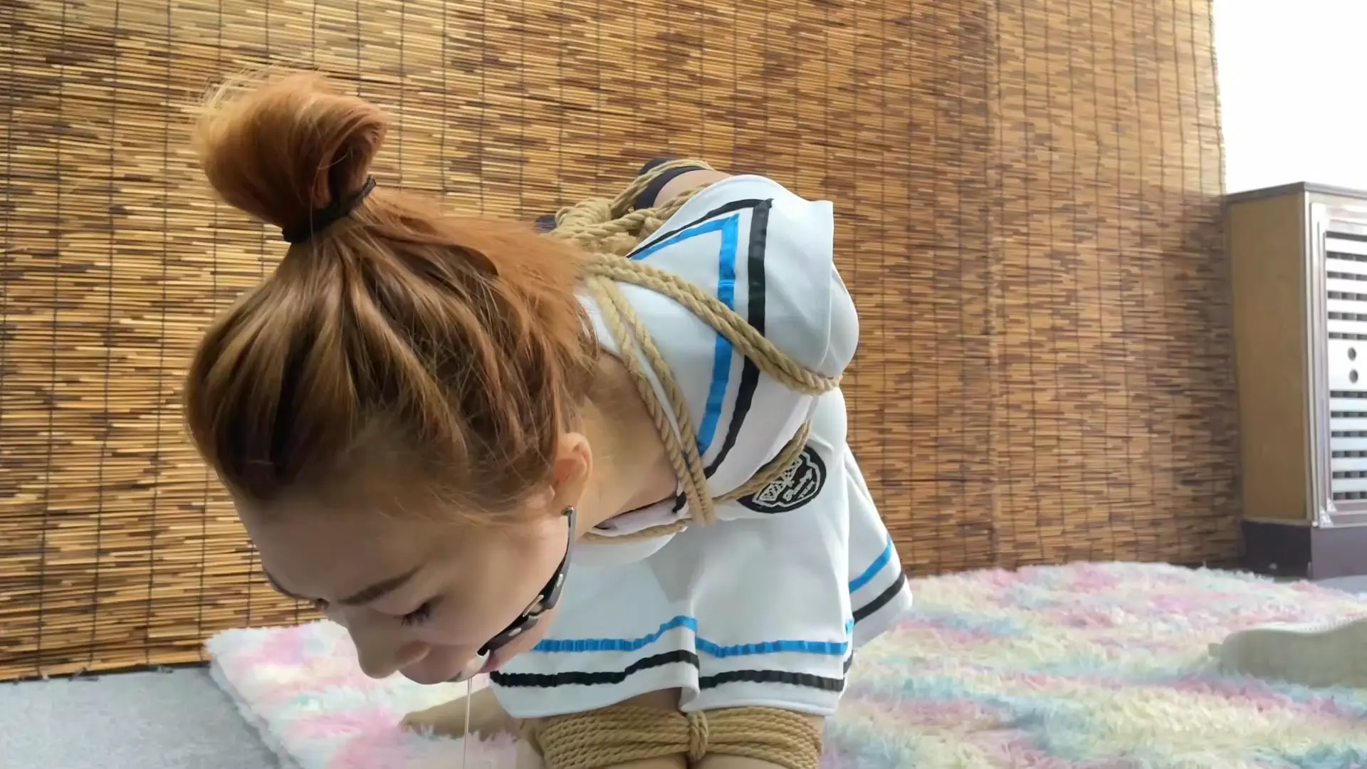 某航空乘制服 运动短裙着装下 两种堵嘴方式 验证自救能力