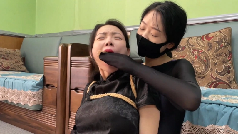 原来J被怀疑是内鬼,因而被囚禁审问,她说那天与K接头后突然遭人暗算,自己和K都被驷马捆绑起来,并被特制的丝袜套头,很快就会昏迷过去。于是她们开始合作尝试脱缚,最终J成功解缚,然而当她试图为K解缚时却发现她已经撑不住了。