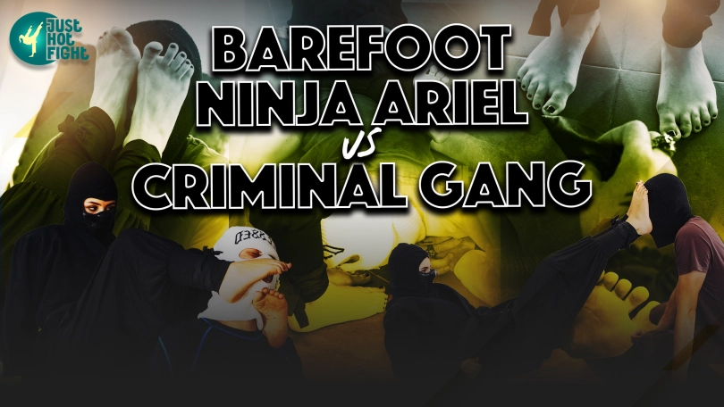 Ninja Ariel wakes up tied up in bed, watched by the guard she lured and strangled with her legs. There are many guards in the building, but no one can resist Ninja Ariel`s feet. She makes them kiss her feet.