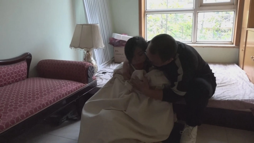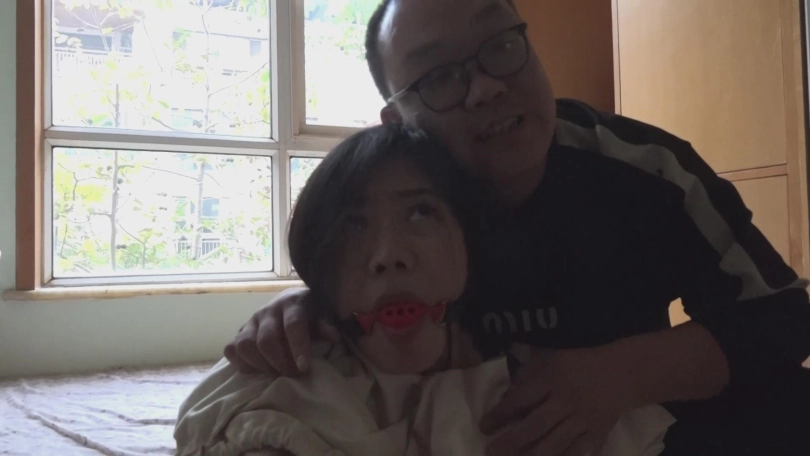 快递员抱着布袋进入,从下往上慢慢扫,把布袋放到地上,快递员打开布袋,开始tj,自由发挥10分钟,打电话联系买家,买家来不拍摄买家脸,当着买家在玩10来分钟,说这个女人被我tj的听话了,你买了不会吃亏的,期间多镜头拍摄,最后和买家把女主装到布袋里,买家扛走。买家扛到车边,放到车里,车开走