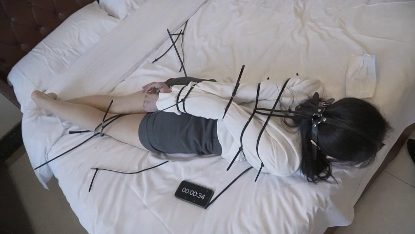 小思参加一个紧缚挑战游戏,挑战一共分4轮,第一轮在日式紧缚鸭子坐的情况下脱掉脚上的棉袜;第二轮在被扎带欧式直臂驷马紧缚的情况下用剪刀剪开所有扎带;第三轮在欧式直臂丝袜全包口球堵嘴的情况下唤醒小爱同学;第四轮在日式单腿吊的情况下取出脚底的钥匙。每轮挑战限时10分钟,如果挑战失败了则在最后的惩罚篇中加时5分钟,小思为了不让最后的惩罚篇过于漫长要努力去完成每一轮挑战。
