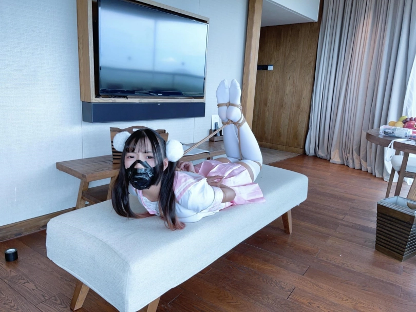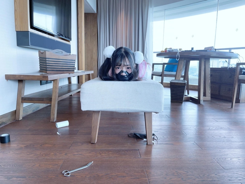 增加封嘴过程,并且在前一期的基础上把拘束方式更改为驷马躜蹄,方便大家观看全身的挣扎!大量第一人称视角!!