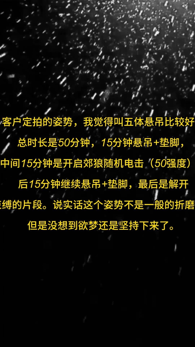 束缚的片段。说实话这个姿势不是一般的折磨人,但是没想到欲梦还是坚持下来了。