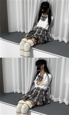 【九尾少女】白丝死库水雨衣胶带拘束,死库水龟甲缚捆绑,胶带多重拘束挣扎