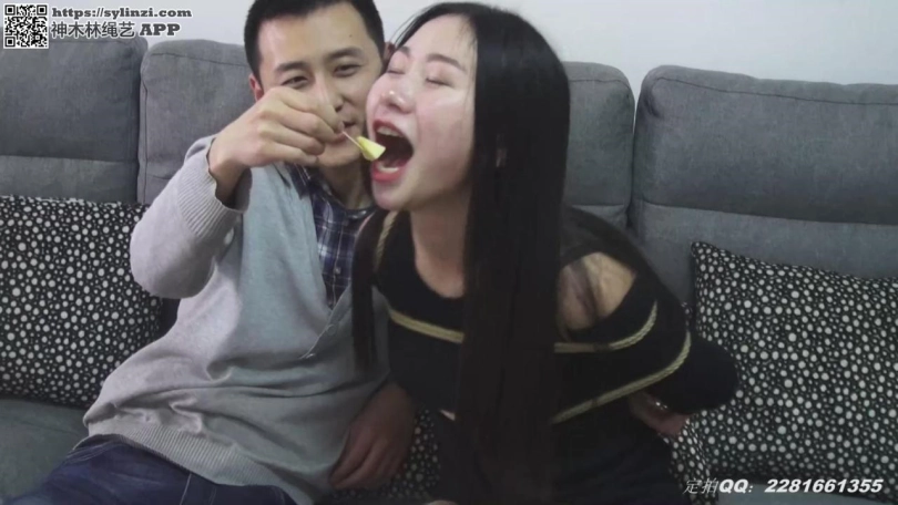 小俩口吃完晚饭,老婆要老公喂自己吃水果,但老公要把老婆捆起来才肯喂,于是。。。。。最后老婆终于把一盘苹果全部吃完了,老公说时候不早了,我先去睡了,而老婆就被捆在客厅的地摊上。。。。。。