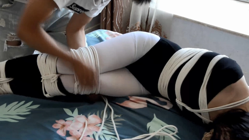最后,几个小时后,MM成功挣脱全身上下的捆绑和堵嘴,最后把兜裆的[不可描述]拉出来。MM已经满身大汗,全身无力软摊在床上大口地呼吸。