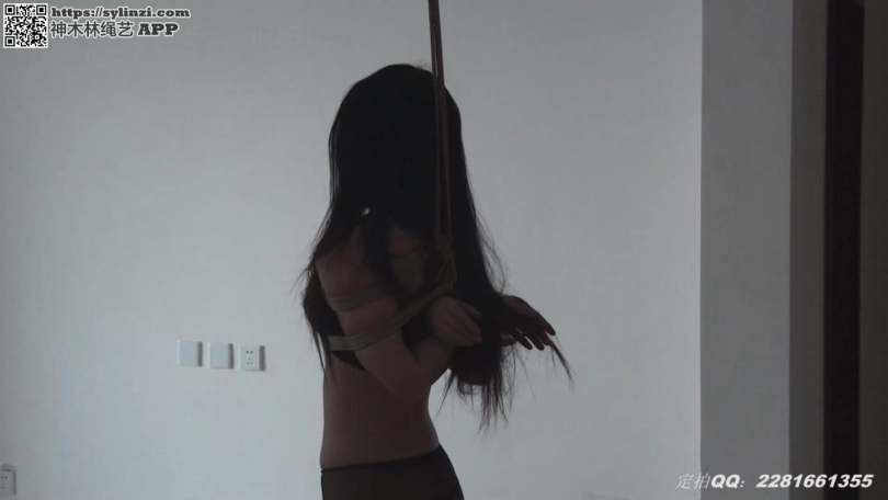 超薄黑丝丁字裤美女被蒙眼,口球堵嘴,日式紧缚驷马挣扎,呜呜的呻吟声很是销魂,挣扎性感真实。