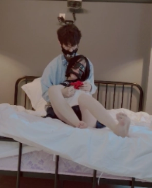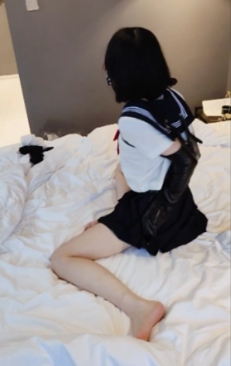 服装:jk制服、裸足、黑色长筒袜、眼罩、大型口环