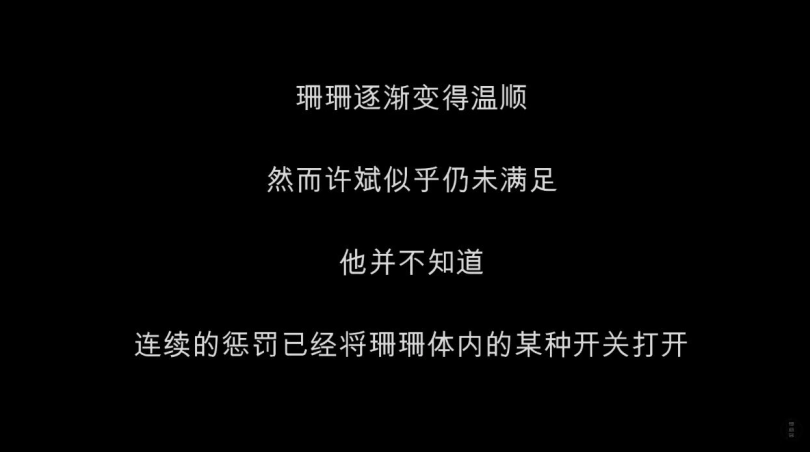 许斌阴沉着脸,深知大势已去的珊珊只得遵从命令跳回客厅,跪在许斌面前,惯用的找借口的伎俩被识破,气急败坏的珊珊再也无法忍受,挣扎着叫嚣着,但这只会让许斌意识到自己对珊珊的惩罚还远远不够。